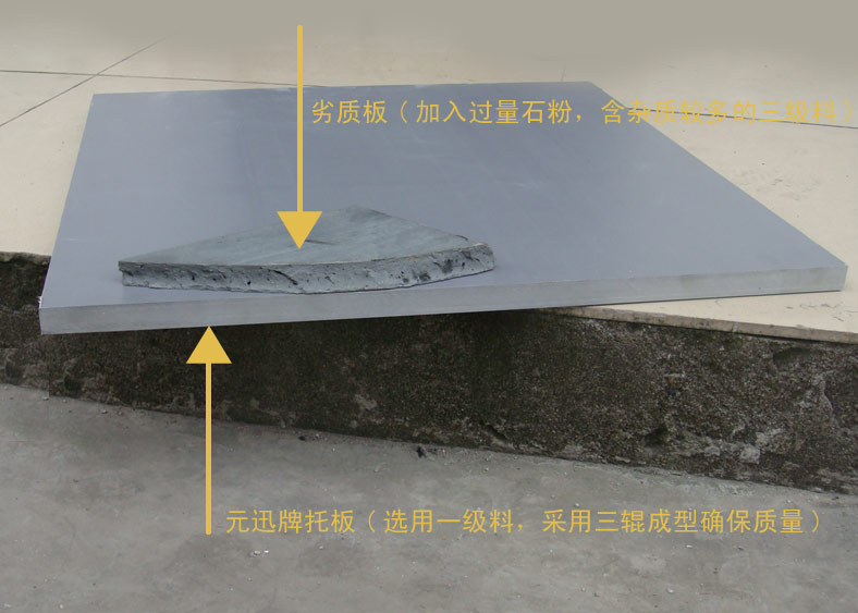 劣質(zhì)板:加入了過(guò)量的石粉,用的含雜質(zhì)較多的三級(jí)料。